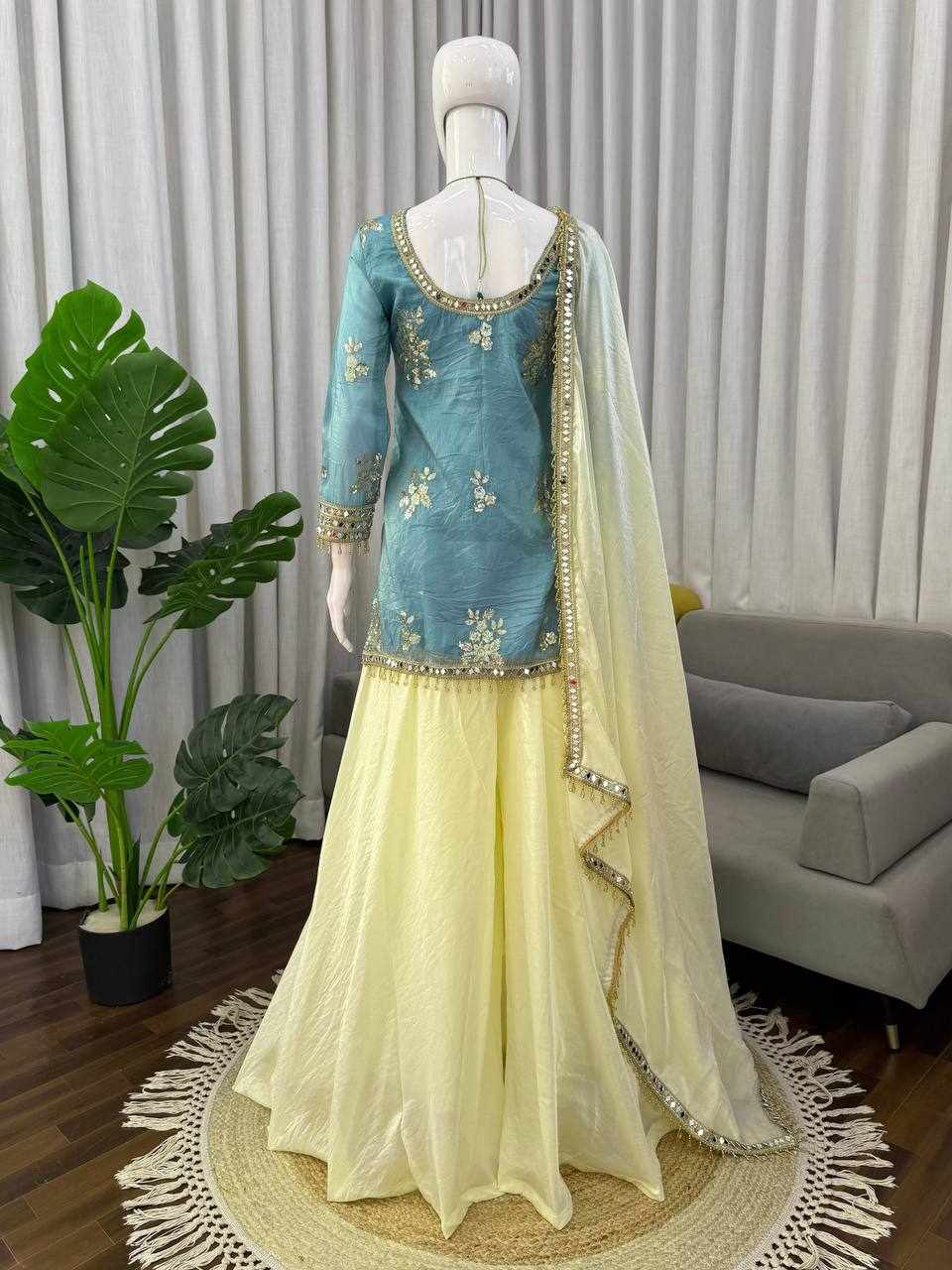 Work: Thread Embroidery with Sequence Work, Real Mirror Work & Readymade Lace Border