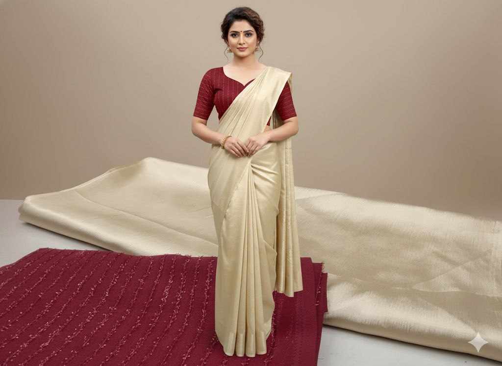s4s Chikku far blouse Designer Saree